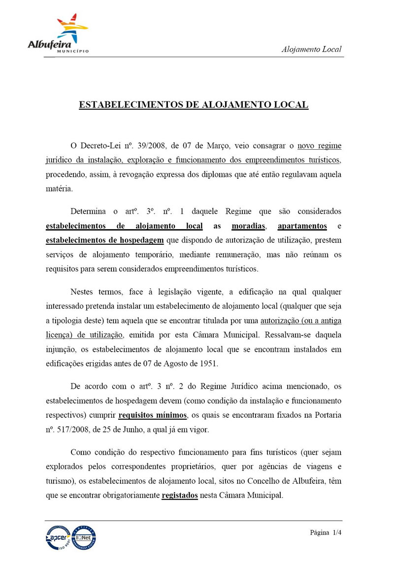 - Responsabilidade e Verificações Técnicas de Electricidade e Termoacumuladores no Âmbito do Decreto-Lei nº. 39/2008, de 07 de Março - Estabelecimentos de Alojamento Local;